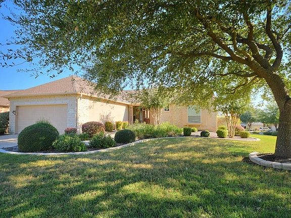 Come home to this Del Webb-built Burnet plan, centrally located within the Sun City community. This home was built with stone on all 4 sides and includes fireplace, jetted tub, bay window in Master Bedroom, hobby area in utility room and professional landscaping. Kitchen features white cabinets, quartz counter tops and recent backsplash. Roof 2020!