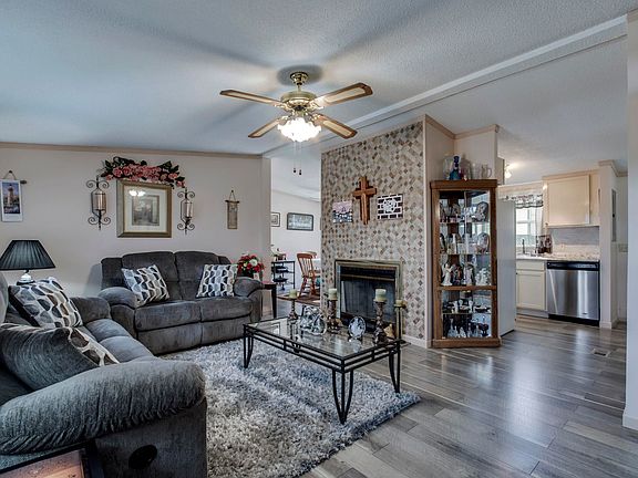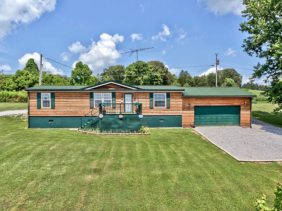 Beautifully updated 3 bedroom/2 bath home on approx 1 acre. This recently remodeled home features cathedral ceiling, open living room/dining room concept, split bedroom layout, large front and back porch, 2 car attached garage and 2 car carport as well as a separate storage building. A few of the upgrades include new heat pump, double pane windows, metal roof, new plumbing, renovated kitchen and more. Home sits on a permanent foundation and property has ample parking. House is on lot 9 and the adjacent lot 10 is included. 2 septic systems. Fireplace currently non working. Sellers had it sealed. Living room and kitchen curtains do not stay with the home.