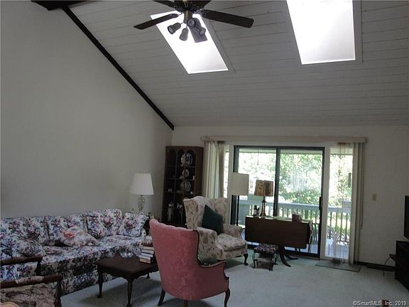 STUNNING transformation of this beautiful unit. Gorgeous new kitchen with s.s. appliances, 5 burner gas range, cabinets with soft touch doors and drawers, solid hardwood floor, beautiful granite counter tops and breakfast bar. Newly added wainscoting in open concept living and dining rooms with soaring ceiling. Living room features wood burning fireplace, skylights and sliders onto covered deck. All 3 bathrooms have been updated. The master bathroom offers a custom built shower seat and custom designed seamless shower door and double vanity. Laundry hookup brought up to main level. Added all new solid pre-finished hardwood through out main level. Lower level offers recessed lighting, newly redone half bath, walk-in cedar closet, lots of storage, mudroom from walk in attached garage. THREE ZONES for heat and central air. New condenser. Unit is located on a cul-de-sac with guest parking. ***Common charges include cable and internet** owner/agent