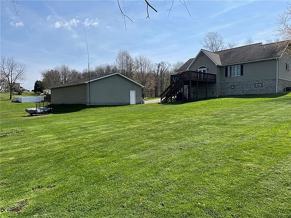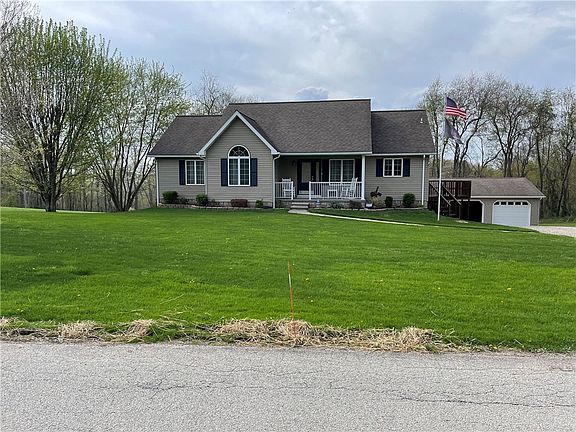 This lovely country home is on a beautiful private setting on just over an acre. The young home is a high quality build with 1 level living at its best! Walk into the living room with cathedral ceiling and access to rear deck and wonderful views and direct access to the garage. Large eat-in kitchen offers loads of masterful cabinetry and counter space to make any home cook happy and offers access to the side deck. The large comfortable master bedroom has a large walk in closet. 2 Spacious bedrooms, one with cathedral ceiling and wonderful natural light, and both with large closet space. The lower level offers a pellet stove, large completed bath with jet tub and an office, and so much space to be completed as family room or game room! The 2 large decks are great for relaxing or entertaining and have direct access to the extra large 3 car detached garage with electric and plenty of room for your vehicles and toys! Be the Proud New Home Owner of this Wonderful Prestine Home!!