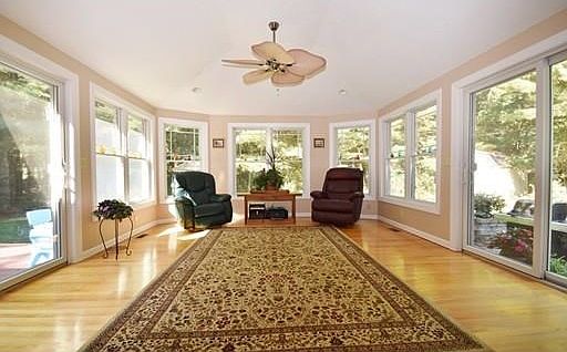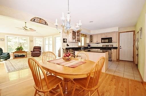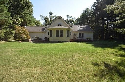 Well Maintained, Unique, Contemporary nestled back on 1.02 acres of land has so much to offer. First flr features wide open flr plan w/ renovated kitchen, granite c-tops, newer appliances, breakfast bar, dining rm w/ hdwd flrs opening to sun drenched family rm w/ coffered ceilings, hdwd flrs, dual sliders to patio & deck w/ private backyard- a nice oasis, generous sized living room w/ two story ceilings, gas frplc for those cool nights, built in bar area just a nice bonus! Fantastic master bdrm w/ his & her walk in closets, french door leading to outdoor deck, cathedral ceilings and master bath a plus! First flr laundry, full bath & additional guest bedroom. Second flr half story area features spacious bedroom w/ full bath. Updates include: Renovated kitchen, kitchen pantry addition, furnace (2013), roof (2013), washer & dryer (2014) as per owner. A Harvest of features, don't miss out!