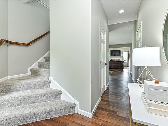 Welcome to 222 Southern Valley Court! Spacious end-unit with great views and lots of green space position on a cul-de-sac in Adams Ridge, a lovely sidewalk community! Come inside to discover a well-appointed 3 bedroom/2.5 bath interior characterized by an abundance of natural light, a neutral color palette, and modern finishes throughout. The open-concept layout seamlessly connects the living, dining, and kitchen areas, fostering an ideal environment for entertaining guests or simply unwinding after a long day in front of the fireplace. The spacious Primary Suite has a walk-in closet and ensuite featuring double bowl vanity and jet-spray tub. Then 2 additional bedrooms give you plenty of room to spread out. Lower level provides a walk-out to the lux green yard and awaits your personal touch. From the convenience of an attached garage to the allure of a fabulous deck with panoramic views, every aspect of this residence is designed to enhance your lifestyle.