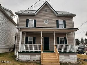 Welcome to this beautiful home at 222 Spruce St. Cresson, Sankertown Borough. Nestled on a quiet street, this well maintained 2 story home offers just enough space inside and out. The large covered front porch welcomes you into the home. As you enter you will notice the beautiful staircase and two living spaces on either side. Newer carpet in both rooms that makes you feel ''at home''. The large eat in kitchen has plenty of storage and counterspace for all your needs. The mudroom is spacious with a separate pantry area. The laundry and half bath complete the main level. Upstairs you will find an updated full bath that also has access to the primary bedroom. A vanity area is located in the walk in closet/dressing room accessible to the primary bedroom. There is a smaller bedroom on this level, used as an office plus one more nice sized bedroom with great storage. Nice laminate flooring throughout this level and updated windows for plenty of natural light. The mudroom walks out to a covered deck that overlooks the flat backyard. Enjoy the firepit for cool evening gatherings and the shed for all you outdoor storage needs. This home is move in ready and ready for you to call for a tour!