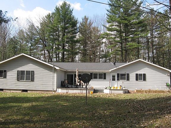 Privacy abounds in this 3 bedroom 2-1/2 bath Ranch tucked away in the pines. Beautiful big rooms light & bright, eat-in kitchen with lots of cabinets & counter space & a master bedroom with its own full bath & walk-in closet. If over 2000 sq. ft. of one level living isn't enough; there's a full walk-out lower level waiting to be finished. In addition to the 2 car attached garage, there's a separate 3 bay garage. Plus there's a small barn & pasture for a horse on this 6 acre parcel. "SPECTRUM/INTERNET NOW AVAILABLE". Come see!