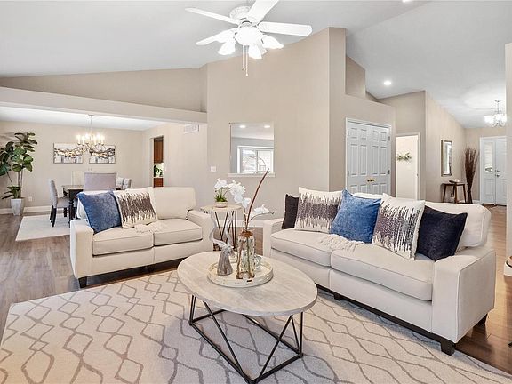 4 bed, 2 bath ranch home with nearly 2,500 sq. feet of living space located in Aberdeen subdivision, Ft. Zumwalt West school district. Spacious entry foyer leads to family room with laminate flooring, vaulted ceiling, ceiling fan/light & gas fireplace. Dining room features bay window, freshly painted interior & laminate flooring. Kitchen has laminate flooring, recessed lighting, center island with breakfast bar, coffee bar/planning desk, new gas stove & dishwasher February 2022. Breakfast room boasts bay window, & laminate flooring. Main floor laundry located off kitchen. Master bedroom has new carpeting, bay window, coffered ceiling, en suite bath & walk in closet. En suite bath has LVP flooring, double sinks/vanity, corner soaking tub & separate step in shower. Bedrooms 2, 3 & 4 have been professionally painted & new carpeting. Unfinished lower level with rough in. Interior professionally painted, new laminate, LVP flooring, carpet installed 02/22. Subdivision amenities include pool.