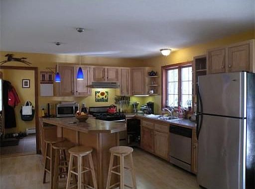 8 Years Young Charming Cape! Welcoming & practical entry/mud-room leads to bright & cheery open Kitchen/living/dining area. Kitchen is designed for a chef! Beautiful custom cabinets, ample counter space and wonderful SS gas range and fridge. Full bath with tub, lovely bedroom and an office, (or small bedrom w/o closet), complete the first floor. Second floor offers 2 more bedrooms and a 3/4 bath. Efficient wood burning furnace keeps propane costs low! FIRST SHOWING AT OPEN HOUSE 4/15 2-4pm.