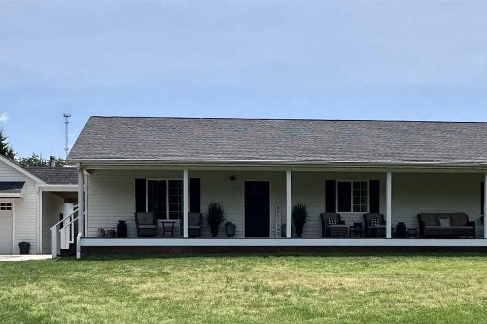 Coming Soon!!! Beautiful ranch with Farmhouse design on 3.2 acres, built in 2018. Open floor plan with vaulted ceilings in open living room, kitchen and dining room area. Covered front porch spans the entire front of home. Detached garage with loft for storage. Covered poured concrete back patio with wood ceiling. Beautiful flooring, cabinets, counters and center island. Everything about this house is well maintained. Show by appointment only.