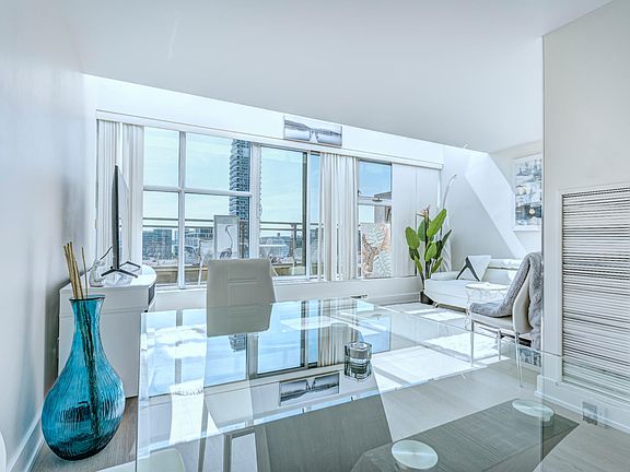 Located in the desirable distillery district, this newly renovated Penthouse condo apartment has amazing views of the lake and downtown Toronto! This 750 sq ft, 2-floor, 2-bdrm furnished Penthouse condo is unique in design and tastefully decorated. One bedroom offers a queen-sized bed and the other a double bed, draped with organic sheets and uber-comfortable medium-firm mattresses. The kitchen is equipped with everything you need to cook up a storm and the 20' terrace is the perfect place to enjoy your meals or simply to hang out with a glass of wine and a good book. A washer and dryer unit is inside the apartment. There is a gym in the building and a pool next door in the community center which is free to use. We are in the bustling Distillery district and within walking distance to everywhere downtown! 1 parking spot include IF needed. Regarding pets: It is our preference to not have any on the premises, but this can be discussed pet dependent. Available NOW for a minimum 6-month period Three months' rent required upfront as well as a signed liability and rental agreement required. No shoes inside house, smoking allowed outside on terrace only.