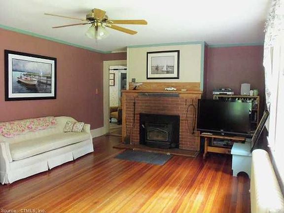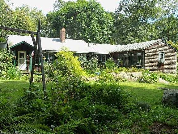CAPTIVATING THAT COUNTRY RUSTIC SETTING! Set off the road with 2.85 rolling acres already set up with a few outbuildings for a mini farm. This charming home built in 1925 offers 3 bedrooms and 2 full baths with wood floors, wood insert stove and plenty of closet space. Enjoy the view of the large landscaped Koi pond that is the focal point from the back of the house, including walk out porch from the large master bedroom and living room. Garage has been sound proofed with insulation, great for privacy!! Plenty of parking for recreational vehicles. 7 miles to UCONN. This home is a very peaceful destination!
