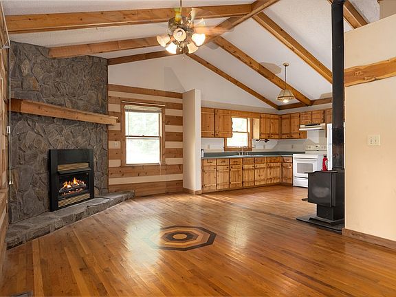 • Cathedral/Vaulted Ceiling, Ceiling Fan(s), Country Kitchen, Kitchen/Dining Room, Living/Dining Room, Main Level Living, Primary w/Ensuite, Primary on Main Level, Open Floorplan, Workshop