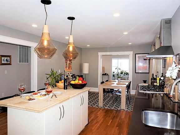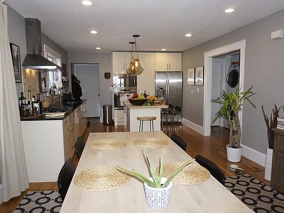 Sunny condo with open floor plan near Cushing square on a corner lot. Home was completely renovated after a fire in 2006. Park your car in the garage and just walk to bus stop, restaurants and shops Step inside this condo and be enchanted with the open floor plan, wood floors, central air and high ceilings.A welcoming entry offers a coat closet before entering the living room with fireplace. A window filled sun room is off the living room provides for a lovely office. The opposite side of the living room is open to a dining room area and fully appliance kitchen with island. The layout is perfect for entertaining. Two bedrooms and a full bath in addition to a laundry closet complete this level. Stairs lead to a finished bonus room which is used as a family room with an office or sewing room area. There is a roughed in bath as well. Gas costs were less then $1000 in 2016.There is a garage and one outdoor parking spot. Yard and patio are common.