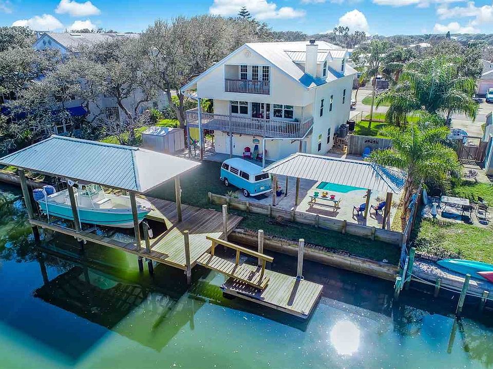 Live the true Florida lifestyle at this Boat and Beach oasis. This canal front home boasts a new covered lift and floating dock with a heated pool. Canal has been recently dredged to allow navigation at low tide. The neighborhood beach access is located at the end of the street along with some great restaurants close by. On the ground level is a 1,300 sq. ft. Garage / workshop where you can store all your toys with front and rear garage entry doors along with an outdoor shower.
