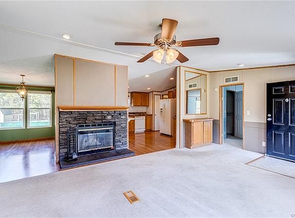 3 bedroom, 2 bathroom modular home on 2 acres of land. Living room has carpet and a stone fireplace. The kitchen has plenty of room and a ton of storage. All new appliances in 2018. Laundry room is off of the kitchen. Dining area features laminate flooring. Off the living room you will find a full bathroom and two bedrooms. Master bedroom has walk-in-closet and large bathroom with stand-up shower, jetted tub and double vanity sink. Home has a new roof (2018), new roof on shed (2017), pool installed (2017), updated appliances (2018) and backyard fence (2019).