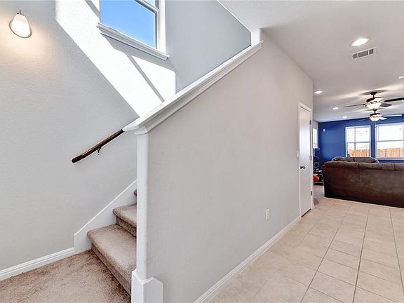Large lot with ample spacing of houses to the left and at back yard! Open family/dining and kitchen area for gathering. Granite countertops and island at kitchen, stainless appliances, and plenty of cabinet storage. Be sure to look at coat closet under stairs.....lots of extra storage space there, too! 4 bedrooms up as is the washer and dryer area for ease with laundry. Master bath with dual vanities and a full walk-in shower. Step out onto the oversized concrete patio and enjoy!