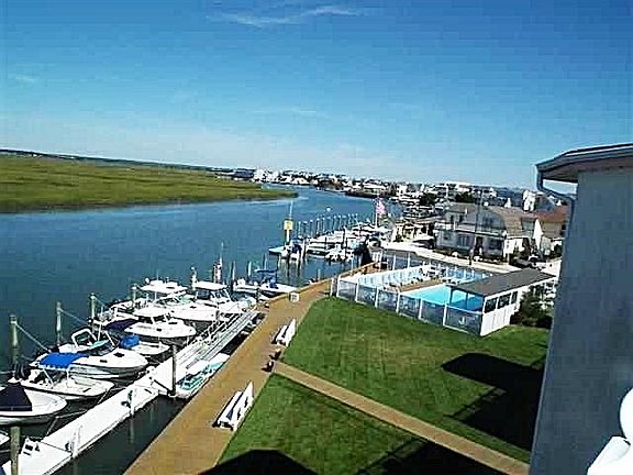 High Tides and Good Vibes in this North Wildwood Bayfront Condominium. This 3 Bedroom 2 Full bath Top floor unit features Endless Unobstructed Waterfront Views, 2 outside decks, vaulted ceilings, gas fireplace, tile throughout, laundry room, and a boat slip. Unit is well maintained, clean and spacious. The Promenade Condominiums amenities include pool with waterviews, BBQ area, large courtyard, storage unit, bike racks, and a boardwalk overlooking the bay and boatslips. Location is a short walking distance to beach, seawall, lighthouse, festivals, and North Wildwood entertainment and dining district. Association fee includes: insurance, water, sewer, trash, and maintenance. Put this one on your list and stay Salty my friends!