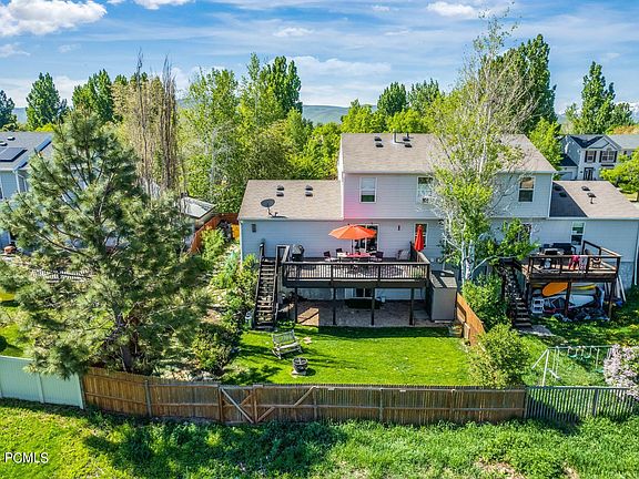 This cute home has one of the best locations in the neighborhood! It backs up to open space and dog park with 180-degree views of the mountains and beautiful horses in the pasture! The large deck is made for relaxing outside and enjoying the views. This home has many recent upgrades including: new LVP flooring on all 3 levels, new paint, new fans, new front door, water heater, water softener, microwave and more! The main level has a large family room and kitchen/dining area which leads to that amazing deck. Two spacious bedrooms upstairs and two full baths and then another large bedroom and bathroom in the basement with a gas fireplace, which could also be a family room if you didn't need another bedroom. The basement also has a sliding glass door out to the covered area under the deck and lovely fully fenced backyard. The spacious 2 car garage has lots of storage racks to keep all your things! Only 12 minutes to Jordanelle Reservoir, Deer Valley Gondola, and the new Mayflower Mountain Resort. You won't a find another home with a view like this for this price.