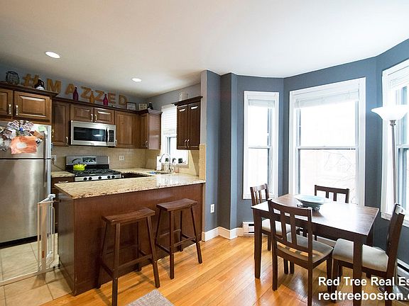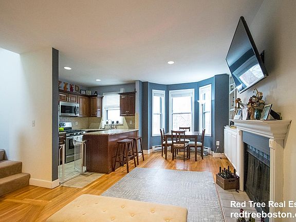 Great opportunity to own a stunning 2 bedroom, 1 bath Penthouse with private roof deck. From the moment you step on the top landing, you will love all the natural light that pours through the windows. This well laid out home boasts an open floor plan with a modern kitchen including Granite Counters and Stainless Steel Appliances. Don't miss the updated bathroom, with in-unit laundry, a real working fireplace, and the convenient location (right on the #11 bus). As an added bonus this home includes a private back deck PLUS a private roof deck with stunning views of downtown Boston. Watch the fireworks over the Charles, right from home! Hardwood floors throughout, newly carpeted staircases, and additional basement storage make this the home you have been waiting for! Andrew Square MBTA Red Line is an 11-minute walk away. electric heat, laundry in unit