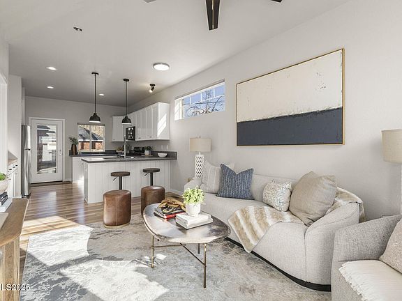 Built in 2022, this modern townhome presents a rare opportunity to own newer construction in the heart of Reno's highly desirable Midtown District—one of the city's most walkable and charming neighborhoods for dining, arts, and everyday convenience. Designed for low-maintenance living, the home features 3 bedrooms, 2.5 baths, an attached garage, a private fenced backyard, and a spacious laundry room with extra storage and folding area. High-end finishes throughout include beautiful laminate flooring, like-new carpet, fresh interior paint, and custom Hunter Douglas window coverings. The kitchen is both stylish and functional, offering soft-close cabinetry and drawers, soapstone countertops, a modern appliance package, and a gas range—ideal for daily living or entertaining. All appliances, including washer and dryer, can be included, making this a truly turnkey opportunity. With no HOA, this property provides exceptional flexibility for homeowners seeking ease of ownership and investors looking for a move-in-ready rental in a high-demand Midtown location. Enjoy being just minutes from local restaurants, shopping, entertainment, downtown Reno, and the airport, all while benefiting from the comfort of newer construction in a historic neighborhood.
