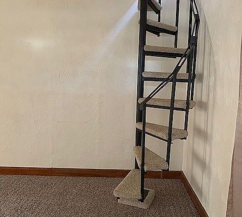 Great starter home for sale by owner. Nice size living room with spiral staircase that leads to the loft. Kitchen, dining area and a very nice size laundry room with great storage. Full size basement with walkout door. Shed.