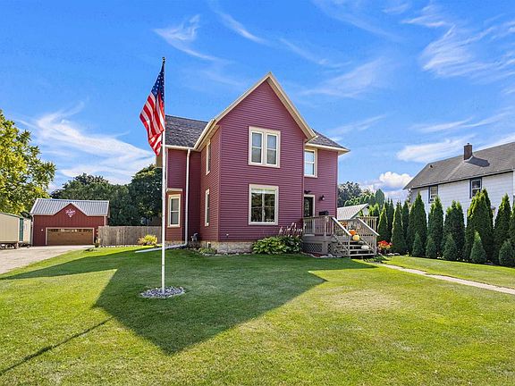 Located between Madison and Milwaukee, this turn-of-the-century, gut-renovated home has a new water heater, a custom kitchen with granite counters, newer windows, bathrooms and roof, beautiful hardwood floors, a resort-style backyard, high ceilings and period details. Football season is underway, so grab your Spotted Cow and head out to the detached garage, a unique retreat with flatscreen hook-up, warm wood throughout and clean concrete flooring. Backyard deck, pool and fire pit lead out to a spacious driveway with enough room for 8 cars. Peel yourself away from this well-built two-story classic and arrive at the Village Garden Restaurant, City Park, Dodgeland High School or The 1850's Bar and Grill in a few minutes. Juneau is the Dodge County Seat. Come see for yourself and stay a while.