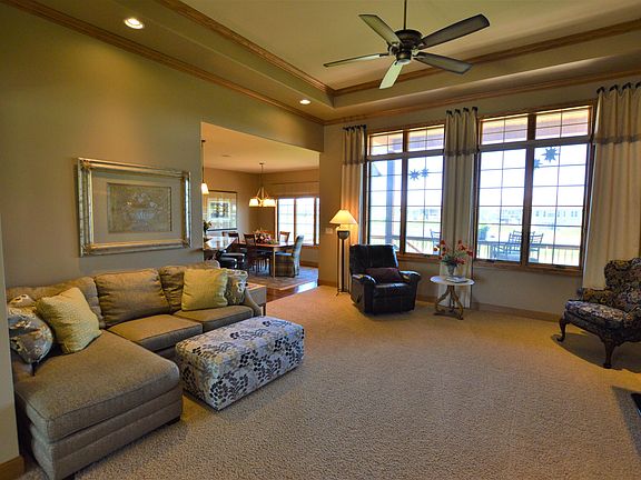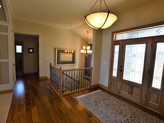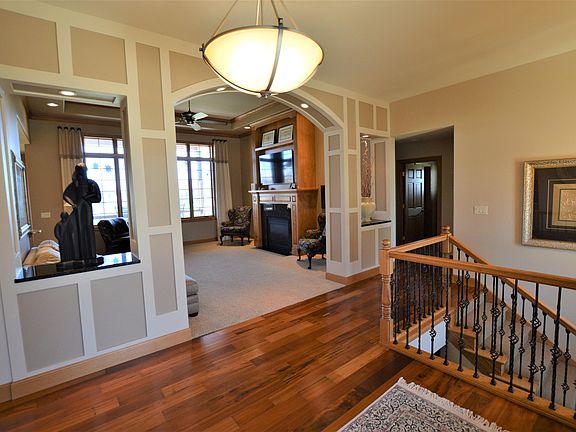A custom built home by ''Rich Biegler Construction'' with panoramic views of Rolling Hills Golf Course! As you enter the front foyer you will immediately appreciate exceptional decor, Cherry wood hardwood and tiled floors, coffer ceilings and two fireplaces. You will love the kitchen with sit-up breakfast bar, granite counter tops, tiled back splash, built-in stainless steel appliances and opens to the dining area. The Master En suite has large bedroom, walk-in closet and Master Bath with double vanity, granite top, tiled walk-in-shower and soaking tub. The lower level features large rec-room with fireplace, coffer ceilings, game room and wet bar. There are 2 additional bedrooms, a den with french doors perfect for a home office or craft room. If you love to entertain you