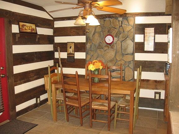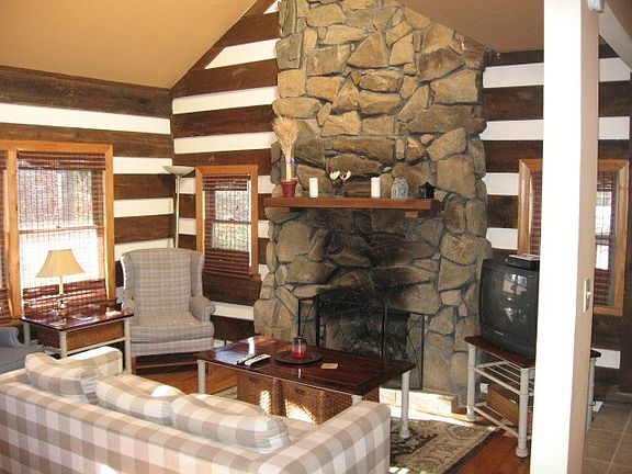 Prime Location: Log cabin with rustic mountain decor and tall ceilings. Cozy rooms, rock fireplace and gas logs. Hardwood floors, rocking chair front porch, fenced area in yard, deck and storage building. Easy access, just 5 minutes from downtown Bryson City.