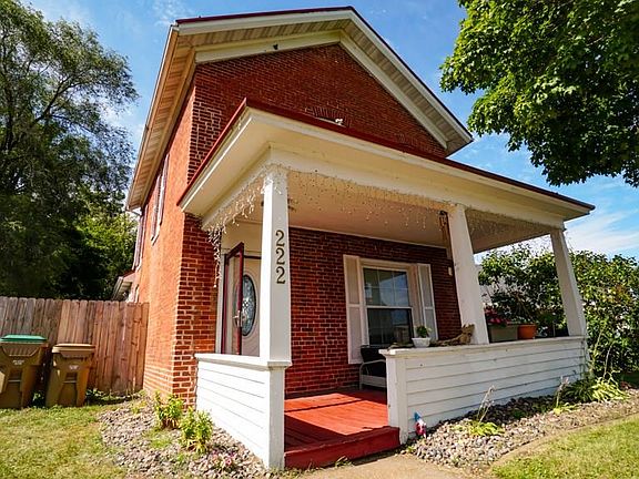 Charming 3 bedroom /2 bath brick home. Home has an inviting front coved porch and side deck and patio. Home features living room with bay window and dining room with grand fireplace, main bedroom, bath and kitchen w/laundry. 2nd story, 2 additional bedrooms and bath. Many updates: metal roof, vinyl windows, gas furnace, appliances, fenced yard, and flooring. 2 Car detached garage and storage shed.