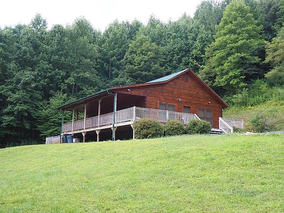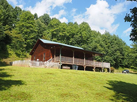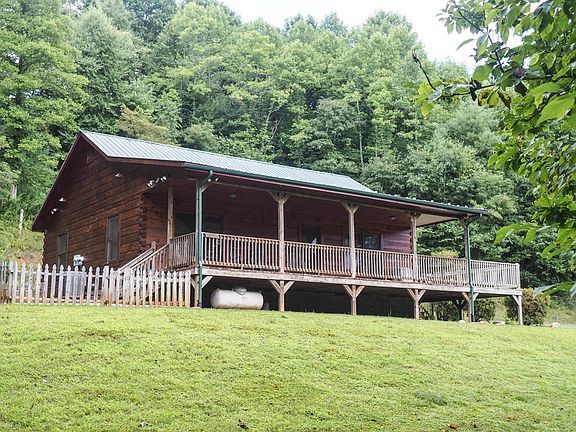 This beautiful fully furnished custom log cabin in pristine condition sits in a quiet mountain setting with 5.76+/- acres and a babbling creek! Home features a large covered front porch and wrap around deck, open concept living and dining area, nice hardwood flooring, cathedral ceilings, gas log stone fireplace, stainless steel appliances, lots of cabinets, spacious granite countertops with an eat at bar, and 2 bedroom suits both with full baths! Other amenities include a heat pump, laundry area with washer & dryer, granite bathroom countertops, and a fenced doggie lot! Land features both wooded and cleared areas for your enjoyment. Just bring your dog, your clothes, your fishing rod, and come find out what peaceful Blue Ridge living is all about!