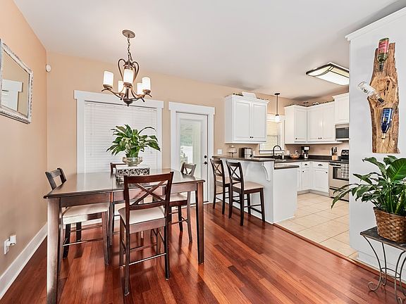 Welcome to this beautifully maintained Craftsman-style home featuring three bedrooms and two full baths. The interior showcases elegant hardwood and tile flooring except for two bedrooms with carpet. The master bathroom is a luxurious retreat with a garden jacuzzi tub and a separate shower, all surrounded by tasteful tile work. The kitchen has an inviting eat-in bar, perfect for casual meals and entertaining. Enjoy your morning coffee or unwind in the evening on the charming front porch, relaxing while enjoying the views of a serene pond and stunning sunsets. The covered back patio is ideal for hosting friends and family barbecues, offering a cozy setting for outdoor gatherings. This property also features a newly constructed 30x20 insulated metal building with power and lighting, ideal for a workshop or additional storage. Recent updates enhance the home's functionality and comfort, including a new heat pump installed in 2021, a new roof in 2023, and a new septic tank installed in 2019 and pumped in 2023. As well as a fresh coat of exterior paint this year. The community amenities include a common area with picturesque ponds, a pavilion with a large fireplace perfect for entertaining, a paved walking trail, and a charming duck population. This home combines modern conveniences and classic charm in a picturesque setting. Don't miss the opportunity to make this your new home!