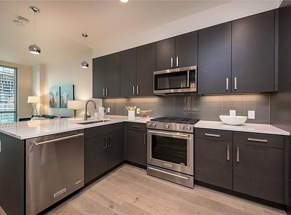 Gently lived in condo that shows like new construction. no pets have ever lived in this unit! Modern color palette with pure white quartz counter tops. Best value in the building for price per sq. foot! Turn-key property with 24-hour concierge. Condo can be sold with or without furniture. Furniture is available for purchase from stager. Located within walking distance of new downtown library, Trader Joe's, many restaurants and shopping. Amenities inc. heated rooftop pool, clubhouse, and "pet park"