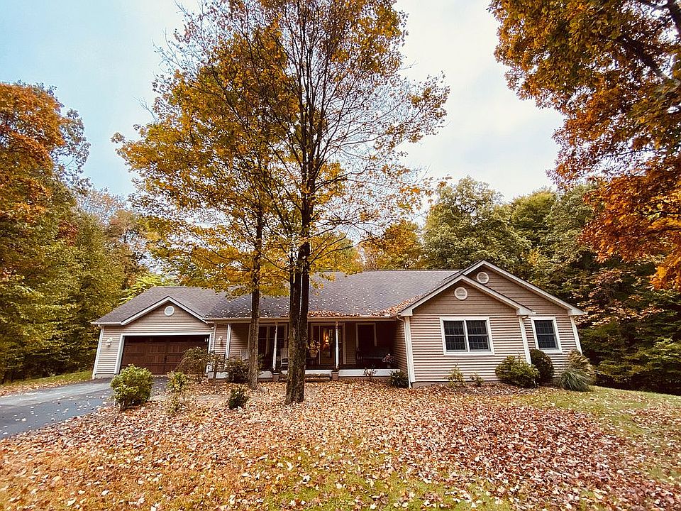 Custom built sprawling ranch offers 4/5 bedrooms, 3 full baths. Eat in kitchen with maple cabinets and recessed lighting, Formal dining room, vaulted ceiling in family room with fireplace. Master bedroom with walk in closet, Master bath with corner Jacuzzi tub/stand up shower. 5 inch hardwood floors, Anderson windows, Therma Tru entry doors, ceiling fans in all bedrooms. Finished basement offers extra entertainment with slate floors, recessed lighting and soft heating system. Detached garage 36X48 has 8 inch slab, heat and 9000 pound car lift. Privacy awaits you in almost 4 acres of land, level backyard with Cambridge paver patio. Pine bush School system, Home Warranty included.