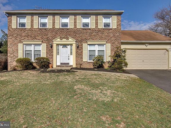 Beautiful Full Brick front Center Hall Colonial just listed in Pine Run . Impressive 20 x 10 Center hall foyer with ceramic tile flooring, picture molding and 2 story Turned staircase. Formal Living room off foyer with case entry offers a cherry built-in entertainment center, crown molding and wall to wall carpeting. Formal Dining room with crown molding, chair rail and wall to wall carpeting. Updated Center Island Eat in kitchen with breakfast room. Beautiful Solid Cherry Cabinetry, Granite countertops stainless steel appliances, recessed lighting and hardwood flooring. Family room opens to kitchen with wainscoting, oversized slider, brick fireplace, surrounded by built-ins. Convenient 4th bedroom on first floor with separate entrance and full bath with jetted tub and shower combination, Mudroom laundry room also on first floor. Open 2 story foyer which leads to open landing, Double door entrance to large Master bedroom off Second floor landing>Master bedroom features separate sitting room and vanity area, ceiling fan and large walk-in closet and Full Master bath with separate double-door shower. Two additional roomy bedrooms, both with wall to wall carpeting and ceiling fans. Large hall bath. Partially finished basement with workshop area. Deck off back of home to an open, level back yard with a view that goes on forever!