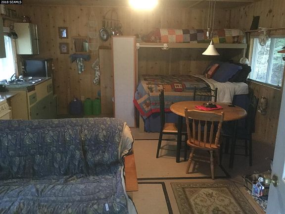 Little cabin in the woods with several outbuildings including a one car garage with greenhouse type ad on . Woodshed, outside shower room, electric toilet outhouse, additional storage shed with freezer. 1000 gallon cistern. All personal property included but moose horns and skiff.. per owners request. To