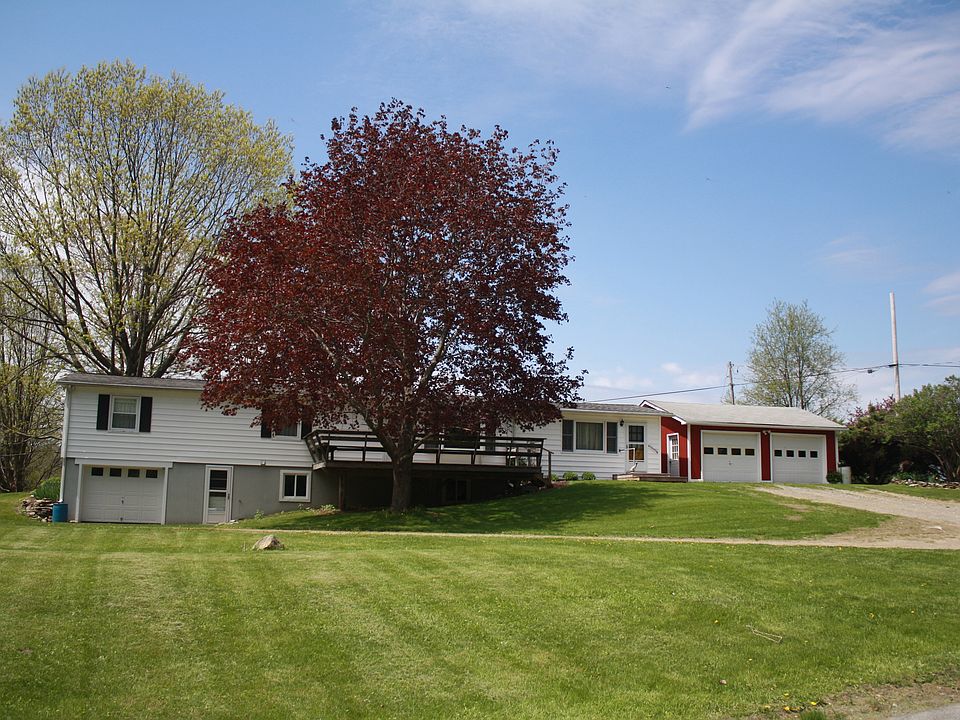 Great views to the west from this 3 bedroom, 3 bath home on 1.46 acres. Open kitchen and dining. Attached one car garage. Detached two car garage. Large front deck. West facing back porch. Vegetable garden and flower beds.