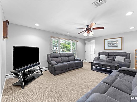 Looking for space and convenience in one perfect package? This beautifully maintained colonial offers five bedrooms, three and a half baths, and a flexible layout designed to grow with your needs. The sun filled living room opens to an eat-in kitchen with rich wood cabinetry, granite countertops, and plenty of prep space. Sliding glass doors lead to a screened porch overlooking a deep, terraced yard—ideal for relaxing or entertaining. The main level includes a private primary suite with a full bath and generous closet space, along with a powder room, laundry area, and direct garage access. Upstairs, a second primary suite features its own bath and makeup station, complemented by three additional spacious bedrooms and a renovated hall bath—giving everyone comfort and privacy. A full unfinished basement with good ceiling height provides endless potential for a recreation room, home gym, or office, while still offering ample storage. Located on a quiet, tree lined street just minutes from Cherry Hill School, Veterans Memorial Park, local shops, and commuter routes via NJ Transit bus and New Bridge Landing train station, this home delivers the best of River Edge living. With its square footage, dual suites, and seamless indoor-outdoor flow, this is a move in opportunity you won't want to miss.
