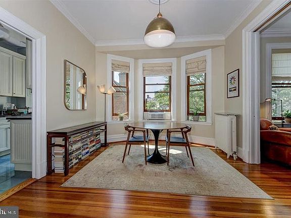 New price. 1-Bedroom + den/separate dining room. Grand detail in the historic Beaux-Arts Mendota facing south over mansion rooftops. Sunny, flexible floor plan can allow for a one-bedroom with a separate formal dining room, a one-bedroom + den or potentially a two-bedroom unit. Updated kitchen with granite countertops, built-in microwave oven, gas range, dishwasher and refrigerator. In-unit washer and dryer, multiple closets and extra storage in basement and a bike room too. 10’+ ceilings, mahogany double-pane windows, original mantel, unpainted woodwork, heart-of-pine floors and lead-glass built-in cabinet. The maintenance fee includes water, sewer, heat, hot water, building insurance, management, building staff (includes front desk) maintenance and reserves at $1,145 monthly + property taxes of appx $182 monthly. Square footage approximately 1,000. At the corner of 20th Street and Kalorama Road in up-market Kalorama but a short distance from the Woodley Park and Dupont Metro stations. Photos are from when the unit was occupied.