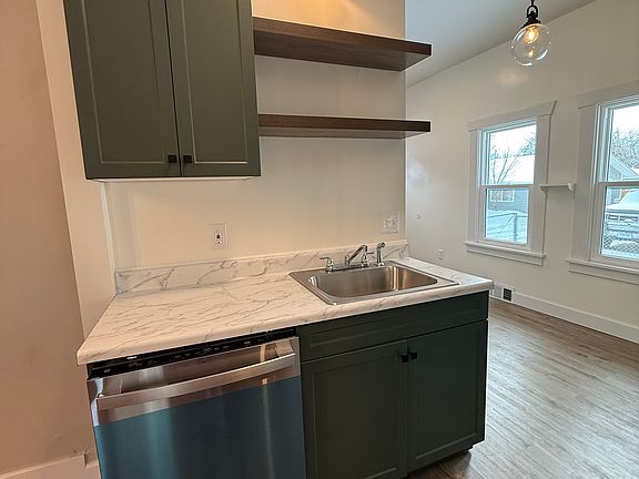 Completely remodeled charming 1920s home! All new electrical, plumbing, windows, roof, furnace, paint, ect, too many upgrades to list. In a good neighborhood and walking distance to schools. Attached garage. Lots of storage. Covered porch overlooking the large front yard with adjacent hardscaped patio, perfect for BBQs. Washer and dryer hook up. Renter is responsible for all utilities. No smoking. No pets. Must be a clean person willing to take care of the property including lawn care and snow removal. Security deposit and first month rent due at signing. 1 year lease required.