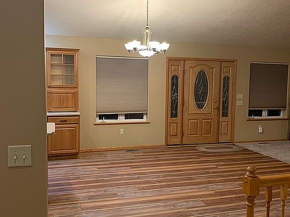 Home sits on 1.5 acres. Open floor plan for entertaining upstairs and downstairs . Utility room when walking in from the oversized 3 car garage has a 3/4 bath so handy to wash up before getting into the home. Walk out basement has two sliding doors patio off both. Large deck off kitchen area for outdoor entertaining. Plenty of yard for kids, pets to play and gardens to grow. School bus comes to the door. Garden shed by large fenced terraced garden plots to keep the deer from getting in another insulated large shed up by the house used as kennel and storage . To envision your new home adventure set up a time to come check it out.