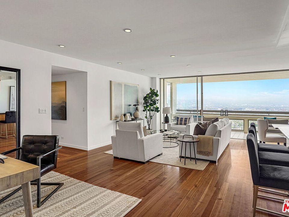 Situated beneath the penthouse in the prominent I.M. Pei-designed Century Towers, perched high above one of West LAs most iconic streets, is this updated two-bedroom, two-bath condo on Avenue of the Stars. Here, location, location, location meets five-star amenities. Pull up to the secure, gated high rise where an on-site valet will greet you 24/7 and ride the elevator to the twenty-seventh floor to experience LA living at its most sophisticated. Floor-to-ceiling windows give sweeping views of the Santa Monica mountains while flooding the open floor plan with warm, natural light. Patio is the perfect place to drink in the city views . Updated with sleek, recessed lighting and polished hardwood floors, this unit is what we like to call, move-in ready. Private tennis courts, expansive pool, and an on-site gym, plus all the best shopping, sipping, and eating Beverly Hills and Century City has to offer are right at your fingertips.