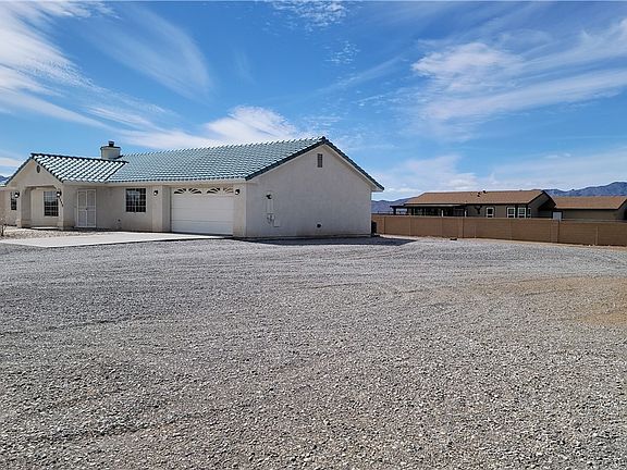 Move-In-Ready, Very Clean, Tile & Stucco Home on 1.07 Acres. Three bedrooms w/two full baths, 1,610 sq. ft. all tile floors throughout, full RV hook ups, & attached 588 sq. ft. garage. Includes: 1,080 sq. ft. outbuilding w/future garage space, & three separate stalls or possible storage bays. Primary bedroom includes walk-in closet & primary bath w/double sink vanity, jetted tub, & separate shower. Home features: new paint throughout, separate laundry room w/tub, breakfast bar, walk-in pantry, 2nd bedroom w/walk-in closet, & ceiling fans/lights in all rooms. Additional features include: large ground mounted evaporative cooler, newer central HVAC heating & cooling system, owner owned water softener, whole house filtering unit, & 588 sq. ft. attached garage w/oversize workbench & 20' wall of floor-to-ceiling built-in shelving.