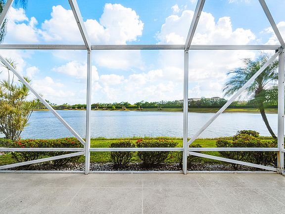 Best View in Riverwalk! Expansive lake views make this Expanded Capri model your ultimate South Florida Oasis. This 2/2 well maintained Villa features a split floor plan, neutral white tile flooring throughout, oversized screened in lanai and lovely open kitchen with white cabinets and peninsula seating for 4. Enjoy watching TV in your oversized family room with fabulous views surrounding you. Accordion hurricane shutters throughout. You won't want to miss the opportunity to make this your Home!