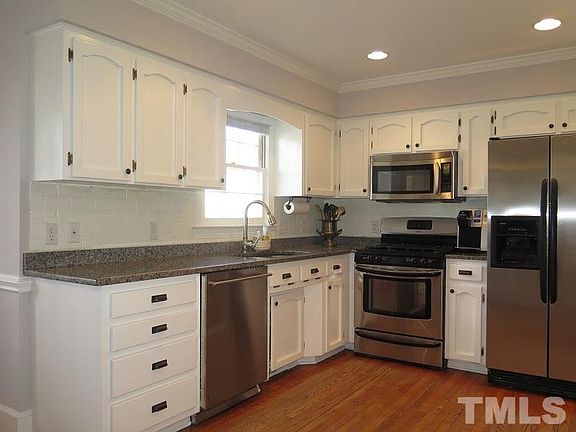 Wonderful traditional style home in prime NW Raleigh location. Hardwoods throughout 1st floor & most of 2nd floor. Extensive crown molding & chair railing. Spacious living room features masonry wood burning fireplace & built-ins. Formal dining room. Bright and open eat-in kitchen offers granite tops, stainless steel appliances with gas range. Large master suite w/ dual vanities & walk in closet. Oversized 4th bedroom on third flr. Huge deck w/ bar area. New HVAC 2015. Walk to fantastic shopping & dining.