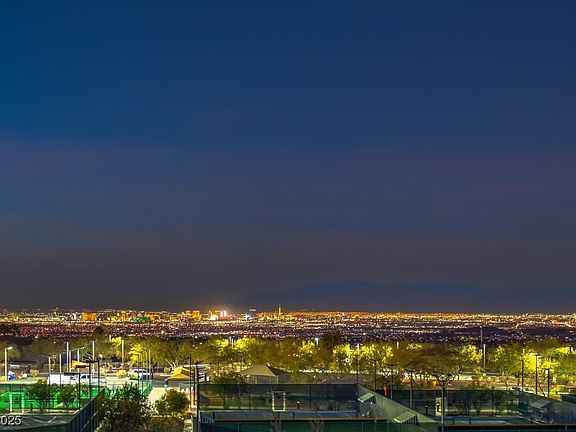 Stunning Expanded Charleston Floorplan with Spectacular Las Vegas Strip, City, and Mtn Views! Fresh 2 tone interior paint, plantation shutters, crown molding, & tile throughout. Gated courtyard Entry, Upgraded double door entry and security door, paver driveway, and exterior stack stone. Formal living room/dining room w/wet bar, recessed lighting, & large radius windows that showcase the view. Gourmet Island Kitchen boasts granite counters w/full granite backsplash, upgraded cabinets, under cab lighting, brkbar, nook, W/I pantry, r/o, & premium Viking B/I refrigerator, gas cooktop, Wolf B/I double oven, & dishwasher. Expanded family room w/cf, gas fp, and surround sound. Expansive owner's suite w/cf, W/I closet, sitting area, garden tub, shower, raised vanities, & dual sinks. Suite 2 w/cf & bath with shower. Bedroom 3 w/ recessed lighting. Powder bath and laundry room w/sink and cabinets. Fully fenced rear yard w/covered patio w/extension and incredible views. Fabulous 55+ community!