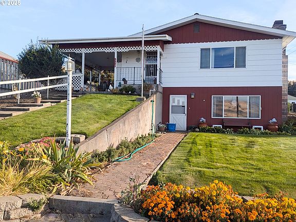 This expansive property has pleasing river and city views and a welcoming 5 bedroom, 2 1/2 bath home with hardwood floors and a wood-burning fireplace. The daylight basement has an exterior entrance from the front yard and features a full living room with a pellet stove, 2 bedrooms, 1 bathroom, and a sizeable utility room that would allow for a full kitchen. This home has been fully maintained and nicely purposed for many years. Find the many outbuildings including a 24 x 36 insulated garage housing a great shop with two 220 volt outlets, a 12 x 16 building with elec, cabinets, and windows, and an additional three weatherproof structures. The covered patio, yard with beautiful landscaping, a large garden space, and sprinkler system are all in the quiet and private back area.