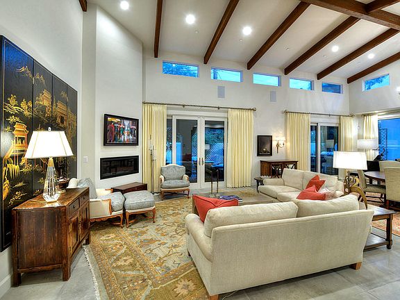 Steps from the historic Arizona Inn & Banner Medical, this luxurious property is tucked at the end of a quiet cul-de-sac in desirable Casa Seton; extensively improved by the Seller featuring new interiors by Linda Robinson, soaring wood-beamed ceilings, open great room plan w/soft natural light streaming through windows everywhere, lush gated private courtyard entry, chef's kitchen w/new gleaming wood counter, SS appliances, stunning living, entertainment & dining spaces, cozy den w/new custom built-ins, extensive landscaping design w/custom iron work, extensive plantings, custom lighting, raised planting beds all designed to be ez care; new deluxe security & sound system; stunning owner's suite w/spa-like bath & large double closets, everything is a WOW here!
