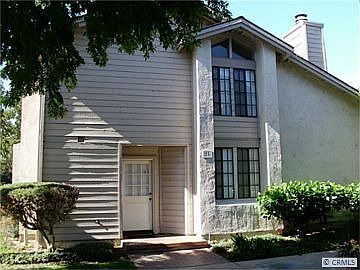 This beautifully maintained Chapman Villa townhome is move-in ready. Prime end unit has one of the most desirable locations in the complex and includes a detached two car garage within steps of your front door. Enjoy the many upgrades which include a gourmet kitchen featuring granite countertops, cherry cabinets, stainless steel appliances. Level one includes travertine flooring, custom molding, recessed lighting, a huge living area with cozy fireplace, and a half bath for your guests. Upstairs features two large master suites with individual bathrooms and spacious closets. Stackable washing machine and dryer included. This unit has also been recently painted and has new carpet. Your own private backyard with patio and grass area. Close walk to association pool.