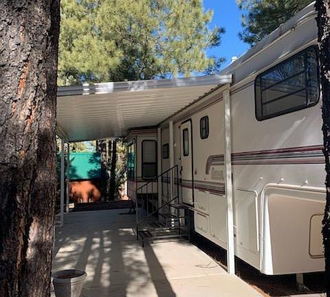 Great easy pull on or off lot for existing RV your own RV, or a park model. Located in White Mountain Vacation Village, a land OWNED community. Bring your clothes and imagination, escape the heat, and enjoy the tall pines! HOA overs water, sewer, trash, and common areas.