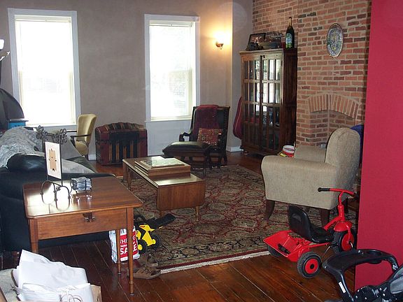 Spatious and sunny end-of-row rowhouse in heart of Butcher's Hill. Lovingly restored with polished antique wood and exposed brick throughout. High unique wood-beam ceilings. Three working gas fireplaces. Enormous master bedroom w. walk-in closet. Third floor bedroom has private bath. Beautiful slate yard w/ garden & pond. Steps from Patterson Park Pagoda and Hopkins Shuttle. Walk to Fells Point, Hopkins, Little Italy. Will refund buyer's agent fee to buyer with no agent. Neighborhood Description Butchers Hill is child-friendly, safe, convenient, beautiful, and historic. More information at www.butchershill.org. This is a great neighborhood to raise kids. The park is the best attraction: our kids love playing in our backyard, walking to concerts at the Pagoda, looking for rainbows at the fountain, the new kiddie pool and playground, and the ice-skating rink. The parents in the neighborhood are organized with an active discussion group (mail rgsmith@umich.edu for more information) and established playgroups for all ages. As SE Baltimore has gentrified, the residents have started new schools. Butcher's Hill is in the catchement area for the excellent PK-8 Patterson Park Public Charter School (www.pppcs.org) and PK-8 Hampstead Hill Academy (www.hha47.org). Baltimore has an established network of Catholic and Private schools and many of our neighbors send their kids to Father Kolbe. Patterson Park was once infamous, but has undergone a miraculous renaisance and is now completely safe. It is full of people walking their dogs at any hour of the day, and parents are out with strollers in the day. As you wander through the park, you will see many newly planted saplings. Our corner of the Park is the oldest and most beautiful, with sweeping views of the Harbor and lush flower gardens along its winding walkways. I walk to work at Hopkins every day. There is also a Hopkins shuttle-bus stop a block away (at Baltimore & Patterson). Hopkins is moving aggressively to clean up the area to our immediate north: what was once a dangerous housing project at Washington and Fayette will soon be a Barnes & Noble and Trader Joe's. We are a short and traffic-free ride straight down Lombard Street to I-83 and downtown, and down Baltimore Street to I-895.