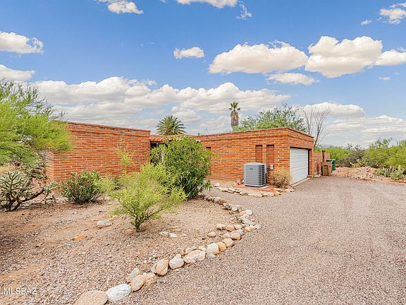 Exceptional ownership opportunity in the prestigious Catalina Foothills Estate No. 8 neighborhood. Quiet cul-de-sac location with beautiful mountain, desert, city, and sunset views. This single-story classic burnt adobe brick home features over 2500 sq/ft. 4 Bedroom/2.5 baths, gorgeous adobe brick beehive fireplace in the spacious family room, abundant saguaros, mesquite trees grace this 1.03 acre lot . Wide, inviting front, back and side porches keep the house cool and provide the perfect place to relax and take in the natural beauty. Deep swimming pool stays refreshing in the hot summers, numerous special touches from interior arches to double doors, updated carpeting, fresh paint, desirable new fixtures. All that remains is for you to put the finishing touches on your forever home.