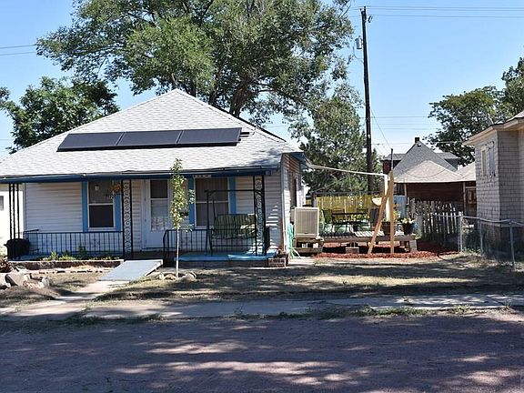 This 2 bed 1 bath has some bonus items. Kitchen has a walk in pantry. The Garage is currently being used as storage, it could be converted back, it does have a loft area that can be used for what ever the needs of the buyer are. Also, there is a laundry area that has room for a refrigerator and two freezers (these items are excluded). The basement does have a non conforming bedroom and there is a half bath as well. The furnace is newer, solar panels on roof, seller does have paperwork and will provide to buyer. The property is being sold as is, no warranties expressed or implied. The back yard has a garden area, side yard has a nice deck, there are also handicap ramps in the front and back yard.